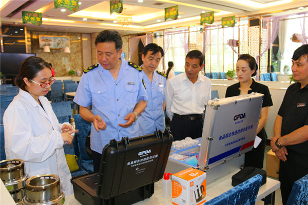 陈克孝一行先后深入皇城国际大酒店、飞天美居酒店、地质宾馆、新世纪滨河酒店等17家“节会”定点接待餐饮单位,及上亿广场士林不夜城、佳水岸小镇、天水商贸城会展中心等3条美食一条街。督促检查食品采购、食品库房管理、从业人员健康管理、加工环境、加工程序、凉菜制作、餐饮具清洗消毒、食品留样、废弃物收集处理等制度的落实情况,并查看了今年首次应用于“节会”餐饮服务食品安全保障现场的食品快速检测设备的使用情况。督促餐饮服务单位严格执行定点采购制度、索证索票和企业自查制度,严格执行食品加工各环节操作规程要求。检查过程中,对发现的问题及时指导企业进行了整改。